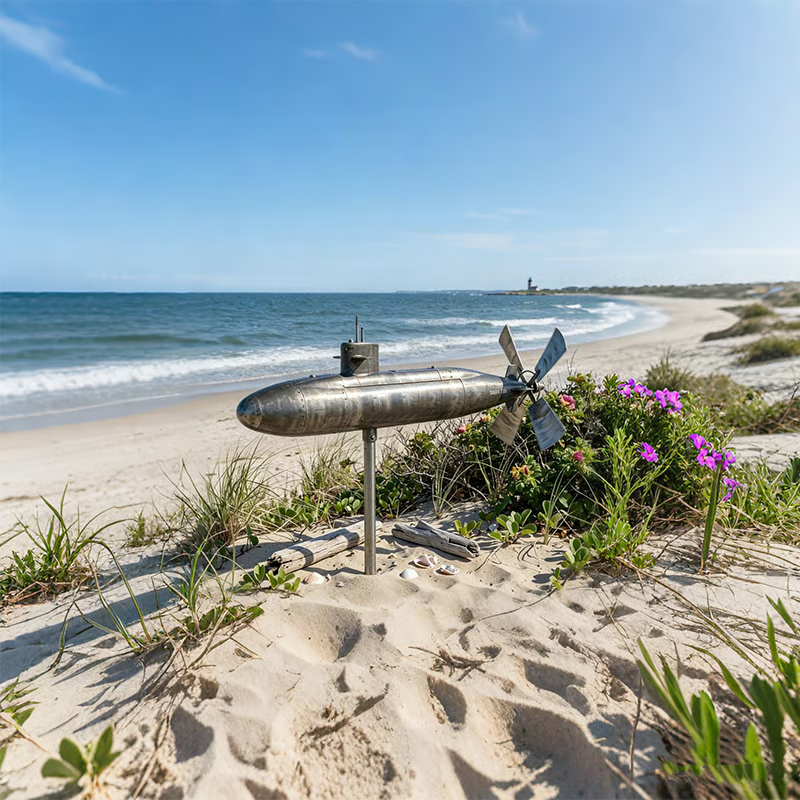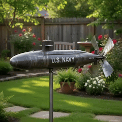 Inspired by the powerful silhouette of a submarine, this striking garden décor piece transforms a symbol of precision, discipline, and quiet strength into a meaningful outdoor display.